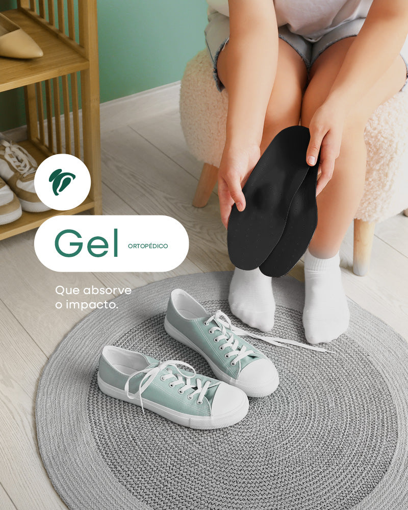 Como o gel ortopédico certo distribui o peso, absorve o impacto do solo e protege suas articulações, em vez de jogar toda a força no calcanhar e na sola.